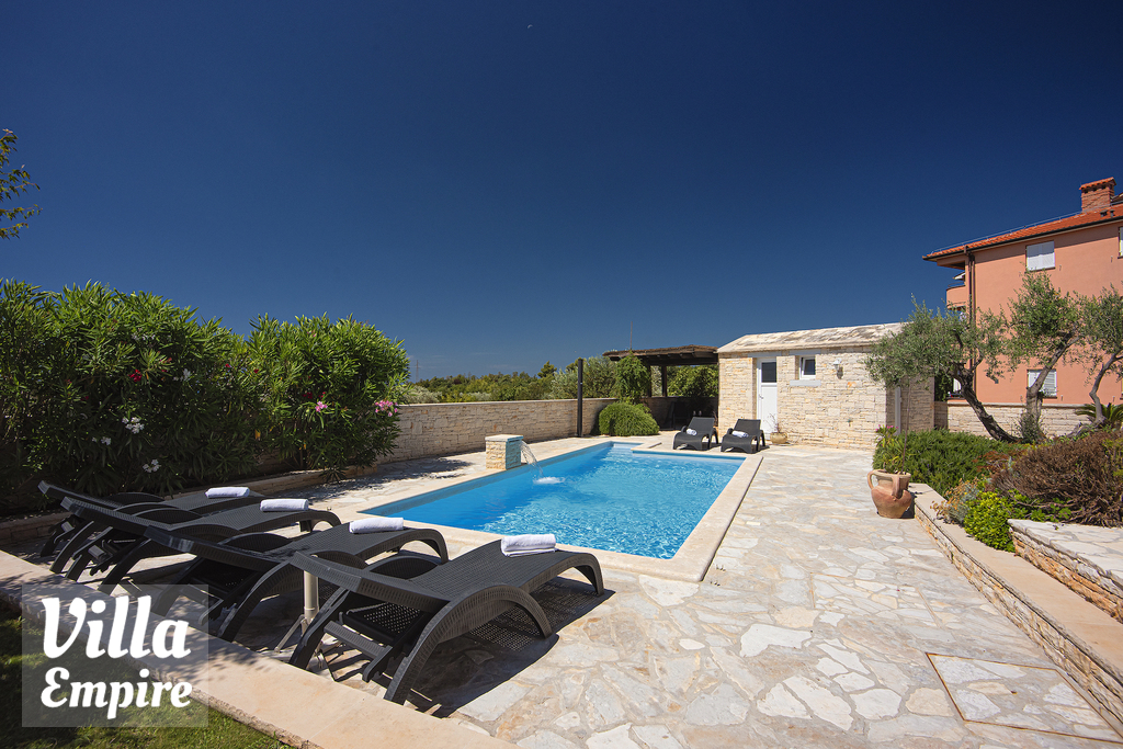Swimming Pool – Villa Sunshine’s private swimming pool is located at the back side. A small fountains add the fun element. A small lawn and garden surrounds the pool. Take a dip in the water or relax on a sunbed, while reading a book or sipping a drink.