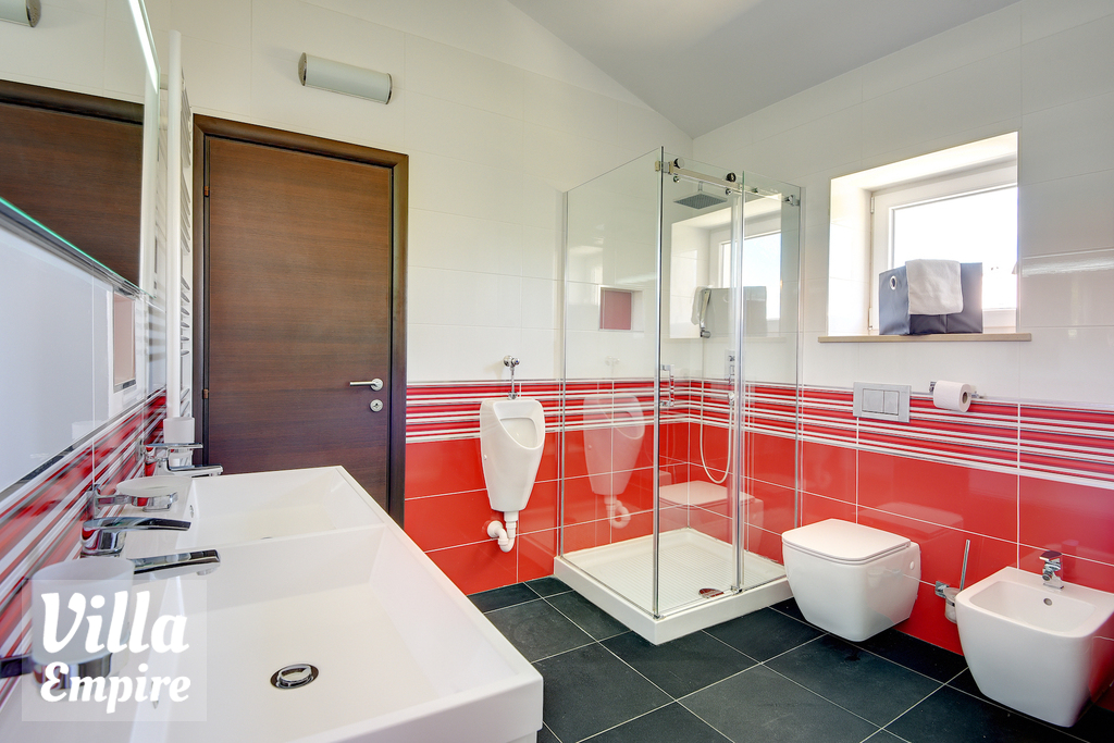 Bathrooms – The house has a total of three bathrooms. One in the ground floor, one in the first floor. The third bathroom is outdoors. They have shower cubicles, his/her sinks, and toilets.